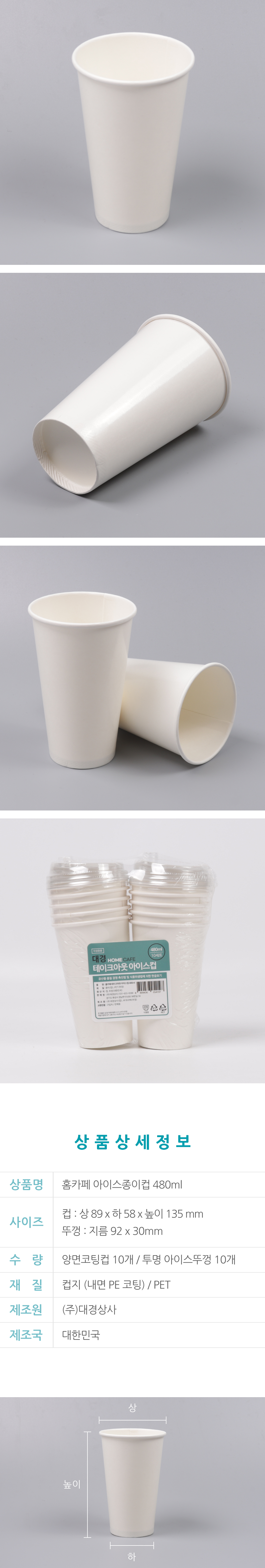 컵: 상89*하58*높이135mm 뚜껑: 지름92*높이30mm / 490ml